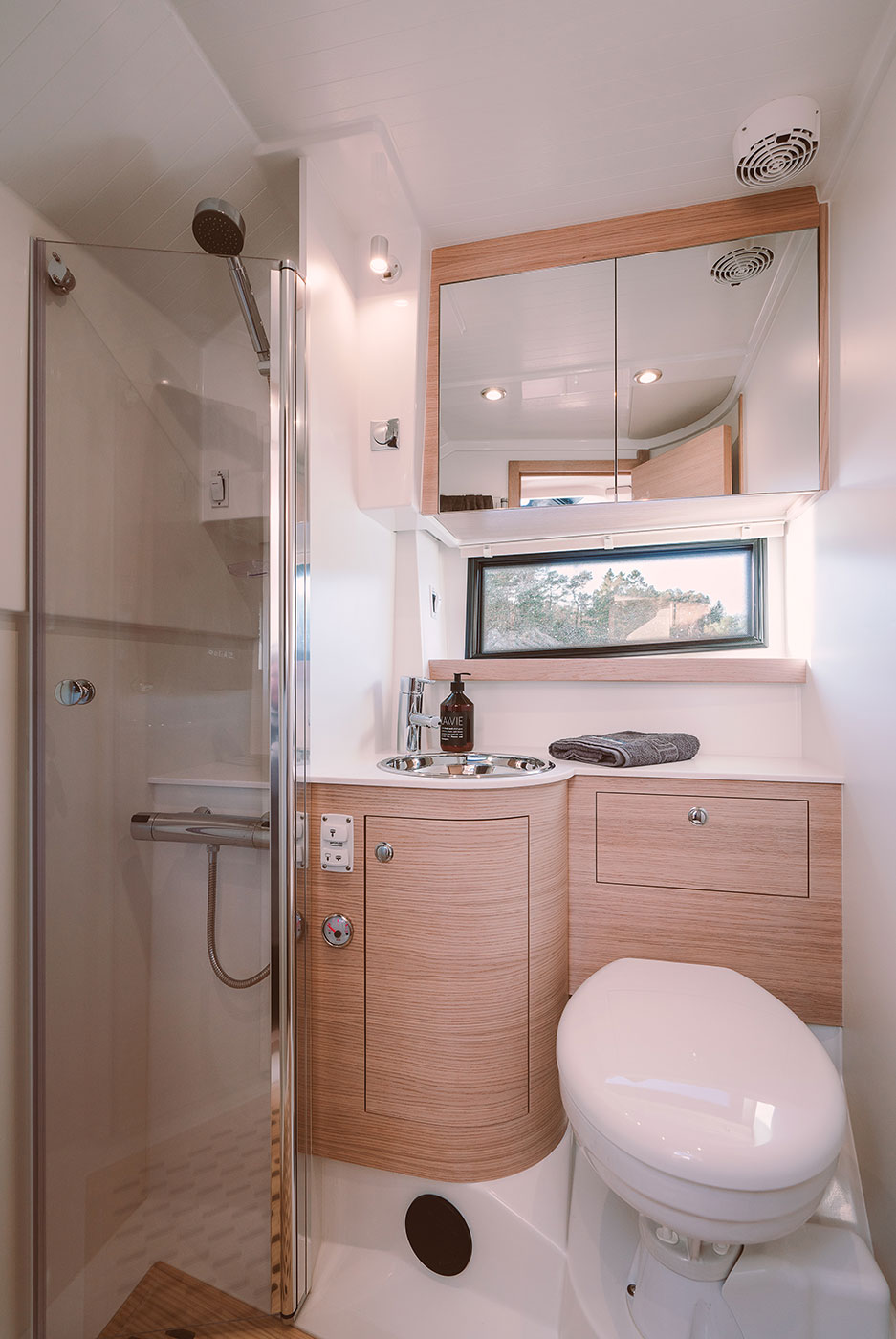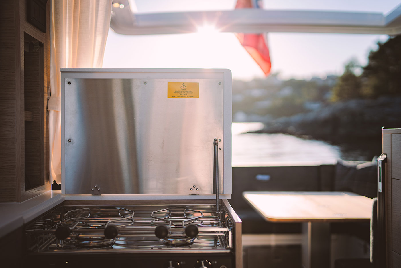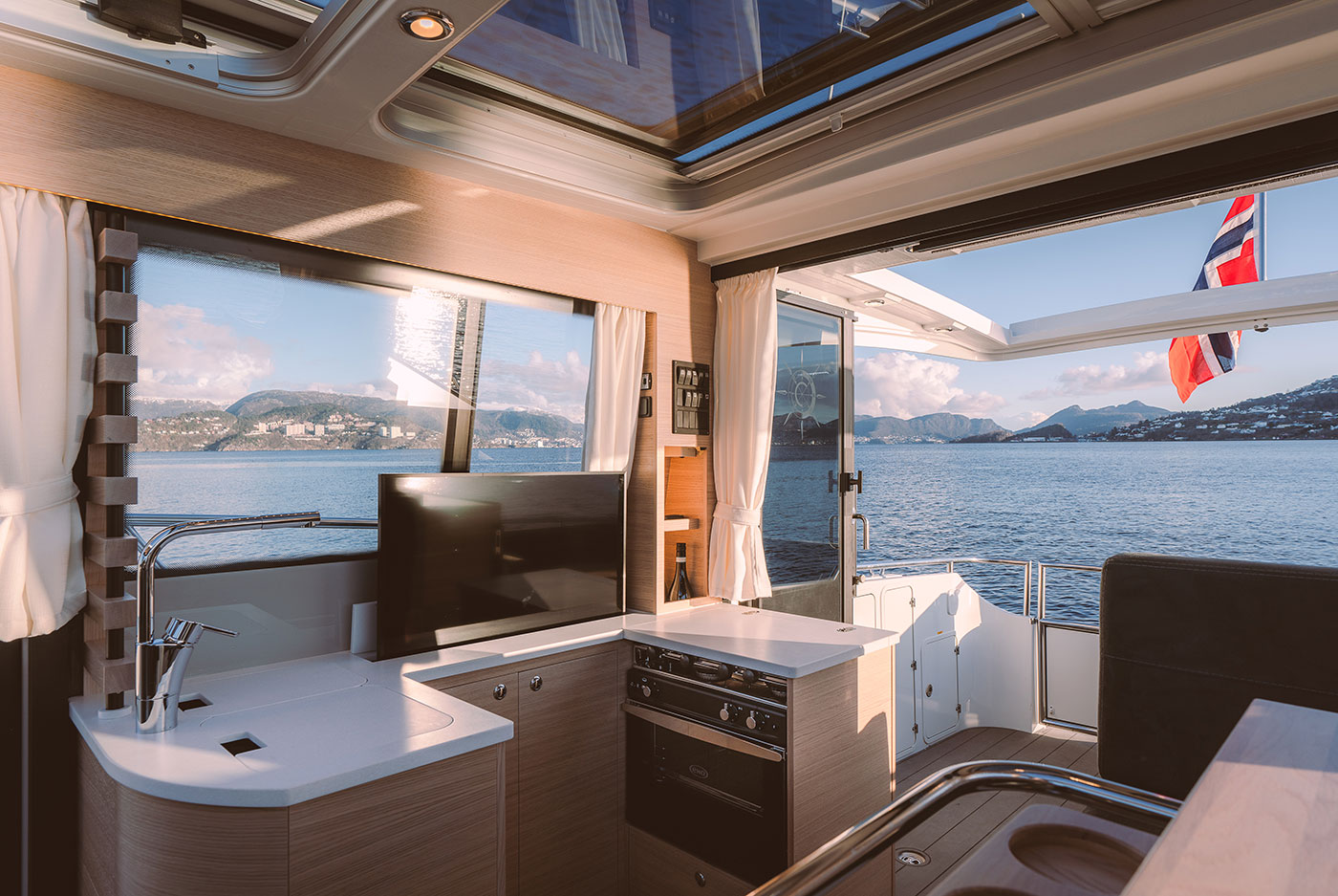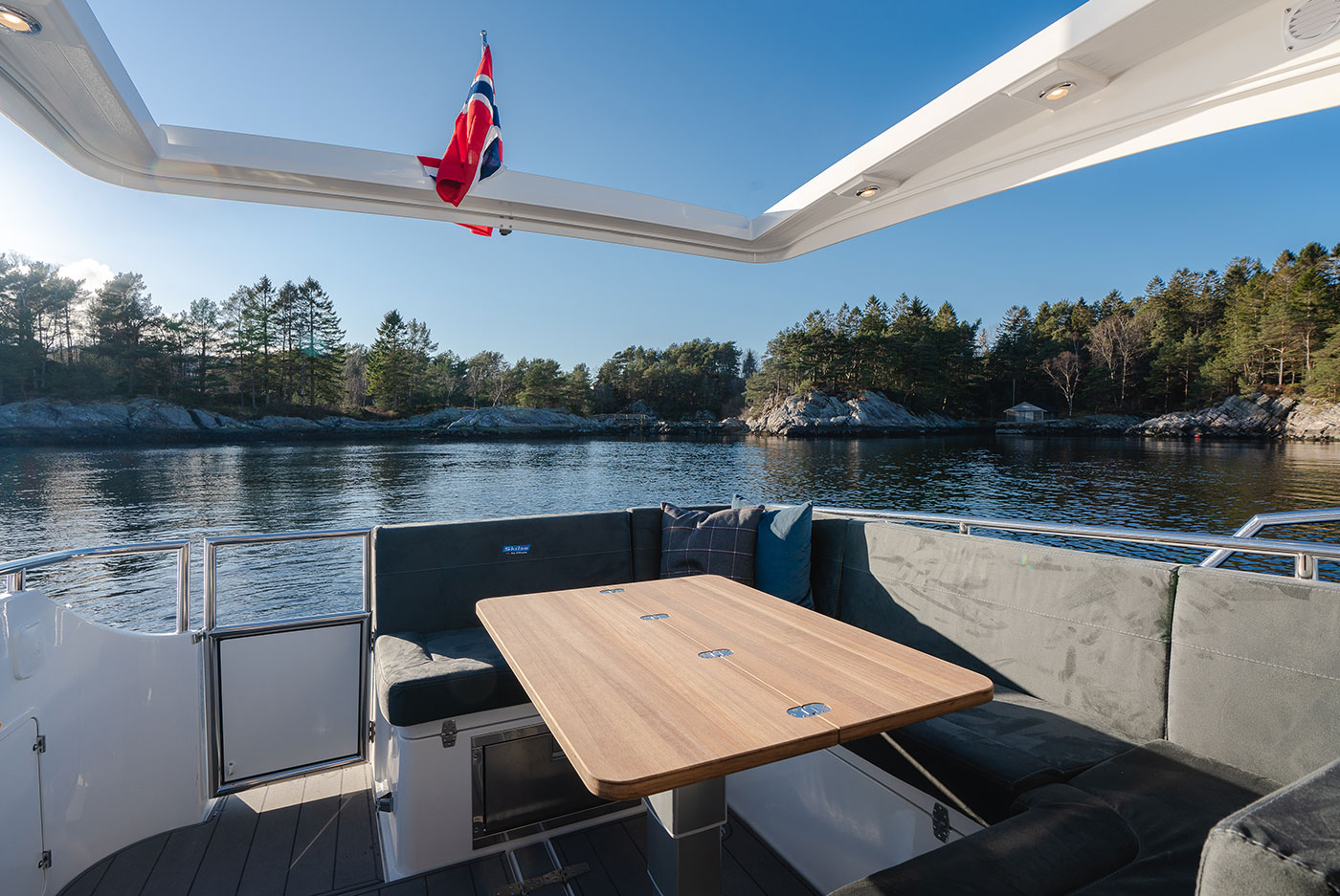 The interior of the Skilso 35 is designed with the needs of families and groups in mind. The boat features a fully equipped kitchenette, comfortable seating areas, spacious sleeping area in 2 cabins and saloon . The cabin is also equipped with a toilet and shower, making it a great choice for longer cruises.